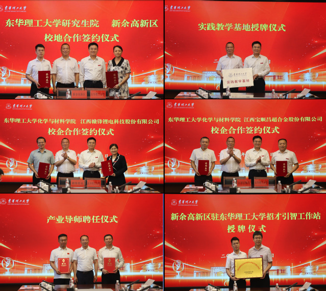 活动现场,校地双方签署了研究生联合培养、校企合作等多项协议,并互授“新余高新区驻爱体育官方网站招才引智工作站”和“实践教学基地”牌匾。杨波为新余市两位技术专家颁发“产业导师”聘书。