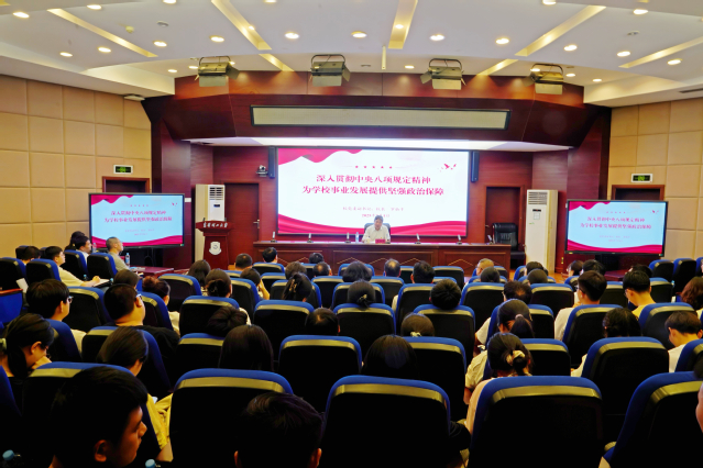 7月1日,爱体育官方网站党委副书记、校长罗仙平以“深入贯彻中央八项规定精神 为学校事业发展提供坚强政治保障”为题,为学校师生讲授专题党课。