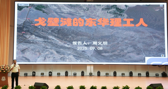 典礼结束后,全国岗位学雷锋标兵、全国教书育人楷模周义朋教授讲授“开学第一课”。他以《戈壁滩的东华理工人》为题,分享十数年扎根新疆戈壁、攻克铀矿采冶技术难关的科研经历,用“爱国奉献、艰苦奋斗、科学追求、师者大爱”的故事激励新生传承发扬学校核军工文化,将论文写在祖国大地上。