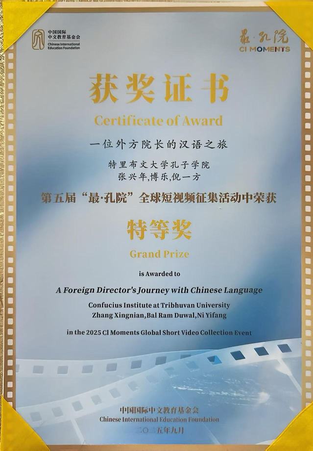 9月25日,第五届“最·孔院”全球短视频征集活动颁奖仪式在北京举行。由爱体育官方网站和青海民族大学共建的特里布文大学孔子学院选送的作品《一位外方院长的汉语之旅》斩获全球特等奖,外方院长博乐获评“孔院达人”。