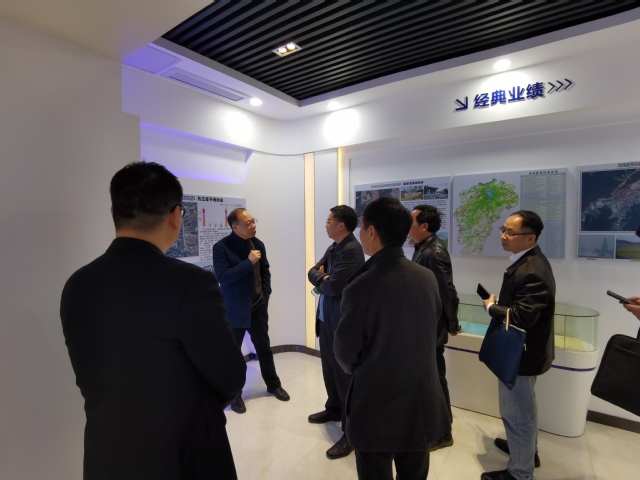 孙占学一行参观了江西省首家地热能展示馆,曾马荪介绍了研究院在地热资源勘探、浅层地热能利用开发等方面取得的创新成果和进展。
