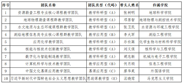 日前,省教育厅公布了2020年江西省高水平本科教学团队建设名单,我校共有10个教学团队获得立项。其中,教学科研型(A)本科教学团队6个、教学应用型(B)本科教学团队2个、慕课应用型(C)本科教学团队1个、思政课教学型(E)本科教学团队1个。