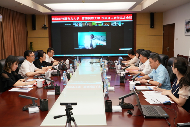 座谈结束后,在行政楼401会议室,中方视频连线尼泊尔,举行尼泊尔特里布文大学、青海民族大学、爱体育官方网站三方校长会谈。孙占学首先对尼泊尔疫情表示关切,他指出,特里布文大学孔子学院是三方紧密联系的纽带,希望今后三校继续戮力同心、紧密合作,争取让孔子学院早日挂牌运行,在中尼文化交流、师资培养、来华留学等方面开展更为广泛和深入的合作。