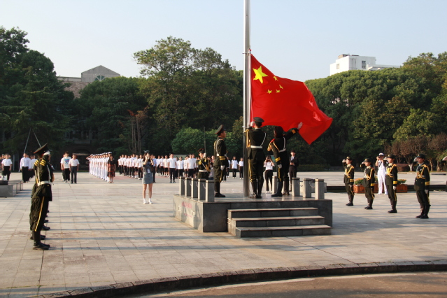 刘云海在纪念“九一八”事变90周年升旗仪式上,寄语青年大学生勿忘国耻,珍爱和平,砥砺奋斗,以高尚品德涵养爱国心,增强做中国人的志气;以担当实干诠释爱国情,增强做中国人的骨气;以过硬本领支撑爱国行,增强做中国人的底气。