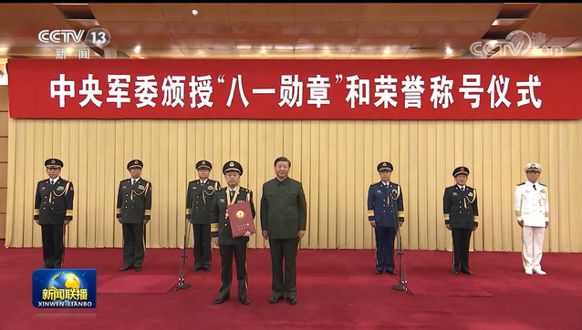 7月27日,中央军委颁授“八一勋章”和荣誉称号仪式在北京隆重举行。中共中央总书记、国家主席、中央军委主席习近平向“八一勋章”获得者、我校名誉校长钱七虎院士配挂勋章、颁发证书,并合影留念。