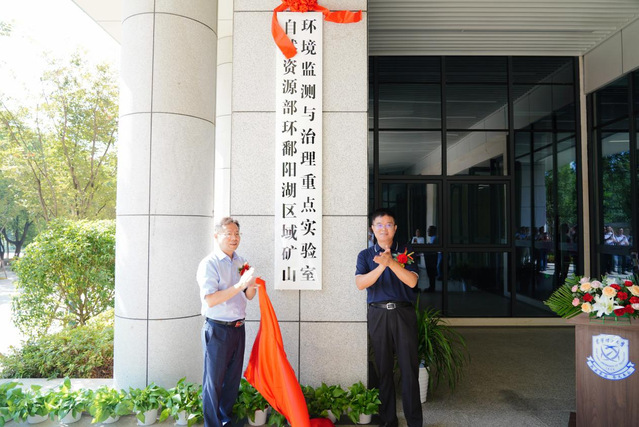 9月6日上午,学校在实验大楼一楼举行自然资源部环鄱阳湖区域矿山环境监测与治理重点实验室揭牌仪式。省自然资源厅副厅长郑斌勇,省地质局党组副书记、局长陈祥云,省地质局党组成员、省地质调查勘查院院长余忠珍,省地质局党组成员、副局长何龙清,校党委书记张福庆,校党委副书记、校长孙占学,校党委常委、副校长邱建丁出席仪式。揭牌仪式由邱建丁主持,孙占学致欢迎辞。