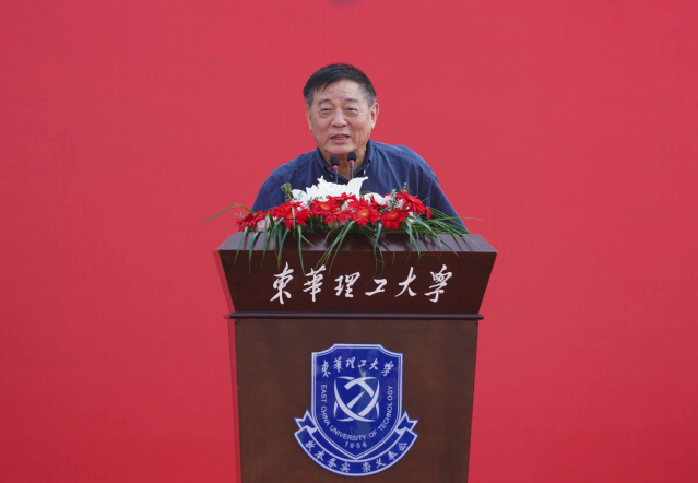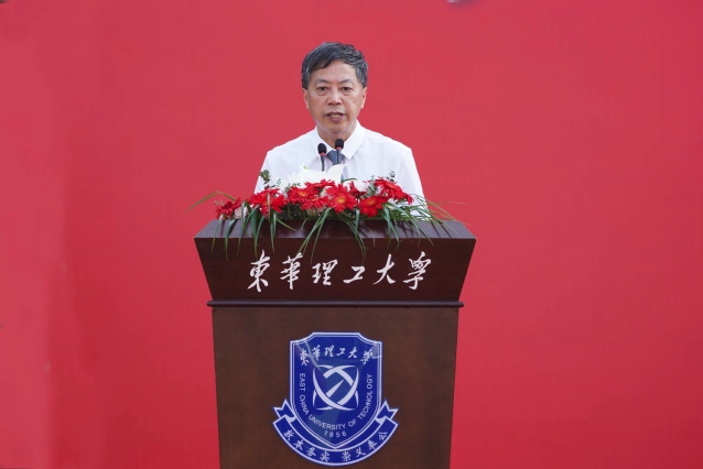 校领导为研究生、本科生新生代表佩戴象征爱体育官方网站文化积淀与精神追求的校徽,勉励大家将“核军工文化”铭记于心,共担东华理工的历史使命,共创东华理工的未来荣光。