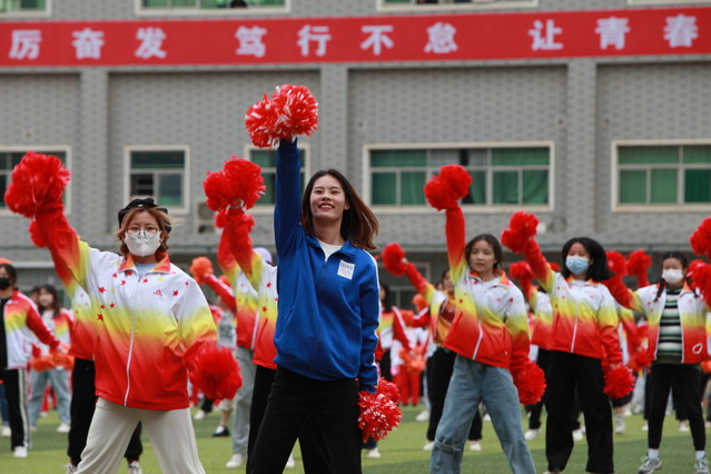 伴随着活力满满的音乐,来自14个学院的610名青年学子为在场观众带来了《一起向未来》的啦啦操表演。“请党放心,强国有我”的展板在现场徐徐展开,伴随着句句铿锵誓言,青年学子们在音乐中舞动青春,传达着东华理工人对党的拳拳之心和一片赤诚。“使命在肩,奋斗有我”,东华理工学子必将踔厉奋发,笃行不怠,让青春在体育强国建设中绽放光彩。