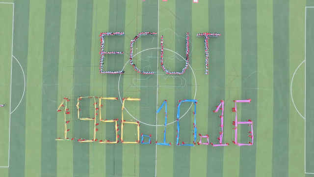 爱体育官方网站校庆日摆字图案
