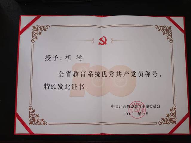 胡德,男,52岁,现任经济与管理学院学团办主任,他在校工作30年,辛勤耕耘在学生管理工作一线,全心全意为学生成长成才服务;他作为一名驻村工作队员,始终坚守在脱贫攻坚和乡村振兴一线,大力弘扬脱贫攻坚精神,在田间地头做困难群众的贴心人。2021年7月,在庆祝中国共产党成立100周年之际,胡德被授予“全省教育系统优秀共产党员”称号。