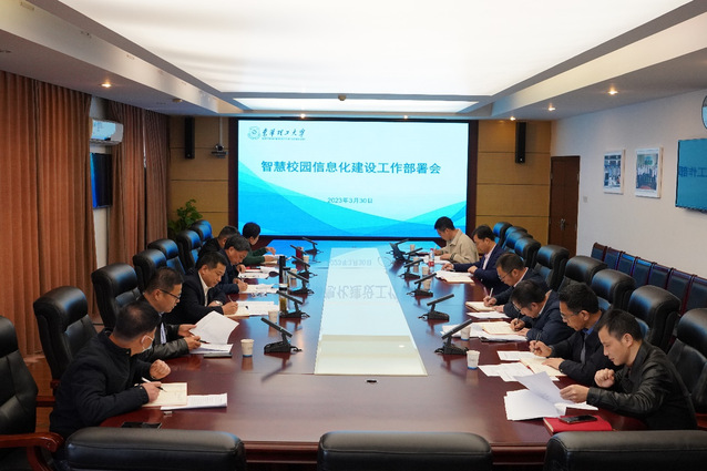 为加快落实2023-2027校银合作协议,推动学校智慧校园信息化建设,3月30日上午,学校在南昌校区行政楼401会议室召开2023年智慧校园信息化建设工作部署会。校党委副书记、校长孙占学,校党委常委、副校长邱建丁、刘云海出席会议。