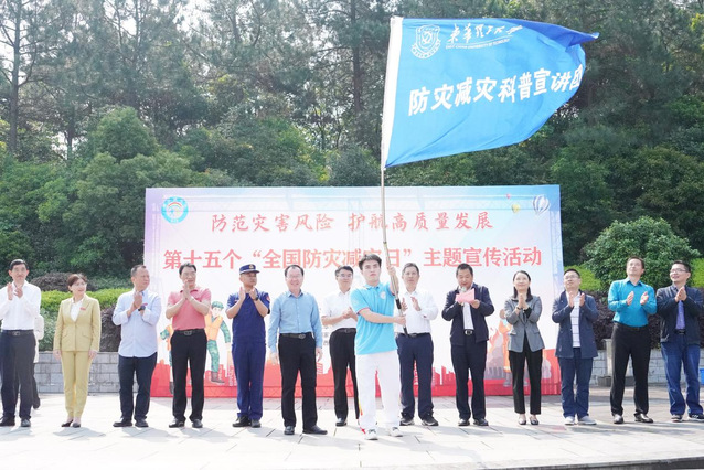 活动中,黄同林为爱体育官方网站“防灾减灾科普宣讲团”授旗,共同启动本次“全国防灾减灾日”主题宣传活动。
