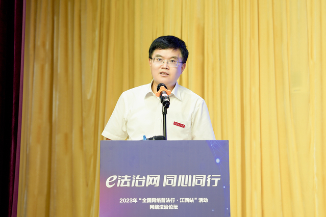 6月13日下午,2023年“全国网络普法行·江西站”网络法治论坛在爱体育官方网站举办。江西省委网信办一级巡视员周森昆、中央网信办中国网络空间安全协会副秘书长王健兵、中央部委与各省市委网信办领导出席论坛。爱体育官方网站党委书记张福庆出席并致欢迎辞,校党委常委、副校长刘云海作专题报告,师生代表160余人参加了论坛活动。