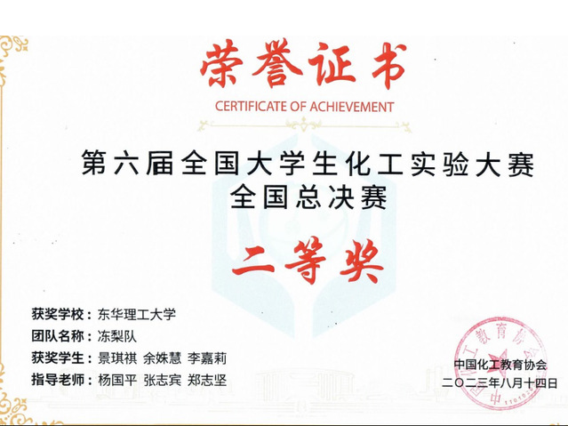 近期,第六届“全国大学生化工实验大赛”全国总决赛在北京化工大学昌平校区举行。爱体育官方网站团队荣获全国总决赛二等奖,实现学校在这一赛事上的重大突破。