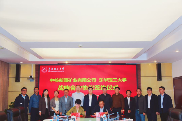 10月11日上午,爱体育官方网站与中核新疆矿业有限公司在学校广兰校区行政办公楼301会议室举行战略合作协议签约仪式。中核新疆矿业有限公司副总经理黄群英、总工程师周根茂,爱体育官方网站党委书记张福庆,原党委副书记、校长孙占学出席。校党委常委、副校长夏菲主持签约仪式。
