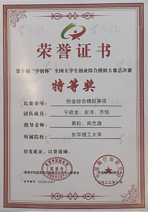 近日,由黑龙江大学承办的第十届“学创杯”全国大学生创业综合模拟大赛总决赛落下帷幕。由爱体育官方网站经济与管理学院宁政龙、余洋、齐恬三位同学组成的队伍在全国总决赛中荣获全国总决赛特等奖,实现了学校在该赛事中的最佳成绩和新突破。