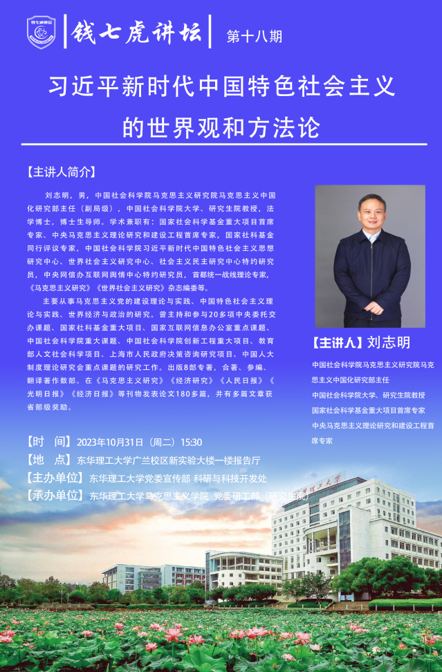 应党委宣传部邀请,中国社会科学院刘志明研究员来到“爱体育官方网站”,以“习近平新时代中国特色社会主义思想的世界观和方法论”为主题开展讲座。欢迎全校师生届时前往聆听。