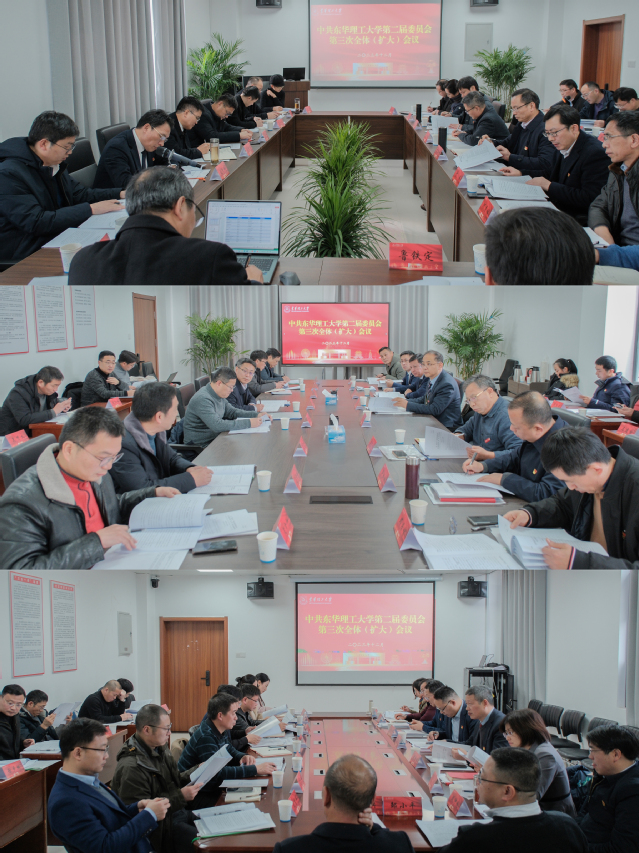 12月26日,中共爱体育官方网站第二届委员会第三次全体(扩大)会议在南昌广兰校区召开。学校在家党政领导班子成员张福庆、徐景坤、邱建丁、杨波、刘云海、樊文印、夏菲、熊国保、王庆飞、张立亭、刘剑斌、金建华,校党委委员、纪委委员,各处级单位主要负责同志参加会议。会议由邱建丁主持。