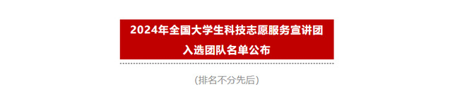 据悉,为深入贯彻习近平总书记关于科普工作的重要讲话精神,推动高校大学生科技志愿服务专业化、规范化、常态化开展,中国青年志愿者协会、中国科学技术协会宣传文化部联合实施大学生科技志愿服务“馆校对接”项目,得到了各高校科技志愿服务团队的广泛关注和积极参与。经过主办单位对申报团队的审核遴选,全国273所高校的300支大学生科技志愿服务团队入选2024年全国大学生科技志愿服务团队。