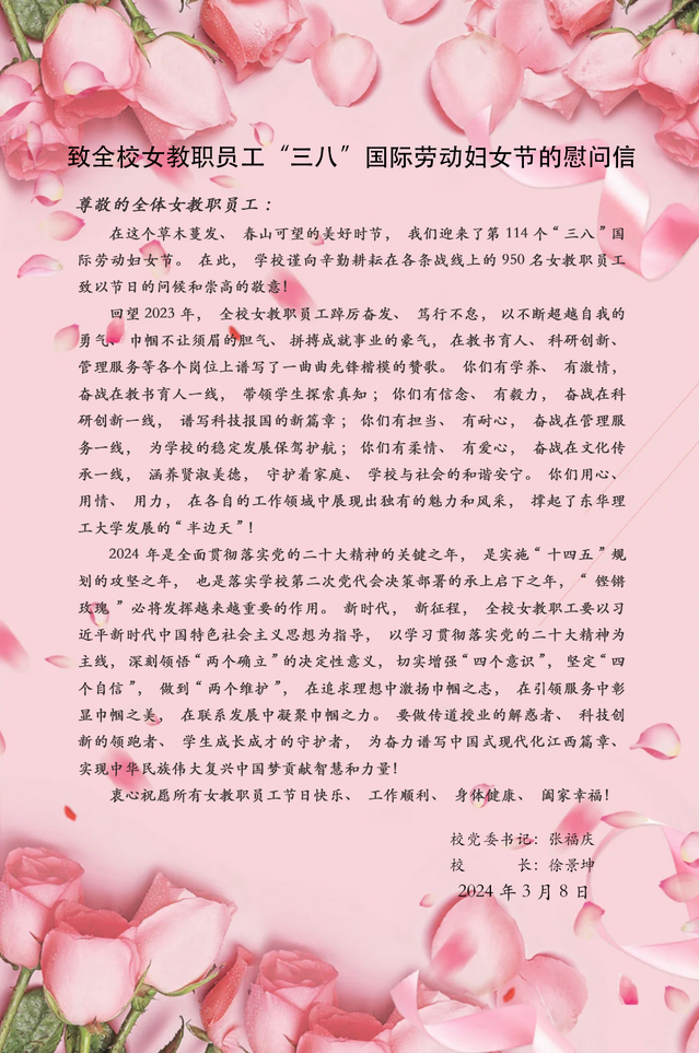致全校女教职员工“三八”国际劳动妇女节的慰问信