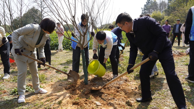 3月12日上午,在我国第46个植树节到来之际,爱体育官方网站组织开展了以“植于自然 共享蓝天”为主题的义务植树活动,全体在家校领导和部分师生志愿者代表等60余人参加活动。