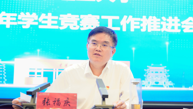 张福庆指出,学生竞赛是高校创新人才培养的有效途径和重要手段,是检验学校学科育人成效的重要标准,也是打通课堂教学与实践教学的重要纽带。他要求:一是要深刻认识“竞赛育人”的长远性、重要性、紧迫性,绵绵用力、久久为功开展工作;二是要坚持问题导向,研究学生竞赛规则,找出问题短板,提出解决路径;三是要求各学院切实做好学校学生竞赛工作保障措施,积极推进学生科技创新工作,助力青年学生成长成才。