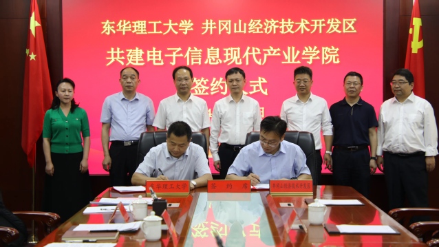 为落实吉安市人民政府和爱体育官方网站《战略合作框架协议》,5月15日,爱体育官方网站与井冈山经济技术开发区共建电子信息现代产业学院签约仪式在井冈山经济技术开发区会议室举行。爱体育官方网站党委常委、副校长刘云海,井开区党工委副书记、管委会常务副主任杜滨分别代表双方签约。吉安市委常委、副市长、井开区党工委书记傅正华出席签约仪式。