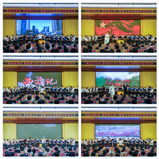活动在一首《歌唱祖国》中开场,以音传情,以美育人,展现了一场别开生面的艺术课堂,体现了学校美韵育人的生动场景。艺术家们将现场观众带进了祖国的大好河山,诉说着对祖国母亲的深深爱意。《江山》《天路》两首曲目用悠扬婉转的旋律,演奏出了对祖国母亲的无限热爱之情;女声独唱《曙色》旋律悦耳悠扬,满怀对未来的憧憬和对生活的热爱;《向往》传递着中华民族生生不息的活力;《天宫迅音》用熟悉动人的旋律传递着中国古典文化的魅力,让人如醉如痴。《啤酒桶波尔卡》《山楂树》《西班牙斗牛士》《苏珊娜》《故乡的亲人》等外国经典曲目,在艺术家们的精彩演绎下,把观众带入音乐的神秘意境当中,如梦如幻。《歌唱祖国》《没有共产党就没有新中国》和《走向复兴》三首曲目用浓浓爱国情,诠释了中国共产党栉风沐雨,带领全国各族人民前仆后继、顽强奋斗、走向复兴的光荣历程。现场的观众被激昂的音乐所感染,伴着音乐,情不自禁地齐声合唱。演出结束后,观众用热烈的掌声向南昌市老干部艺术团致敬,掌声经久不息。