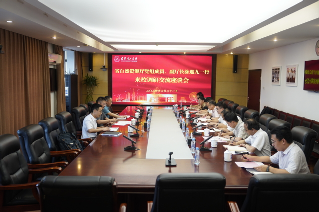 6月21日,省自然资源厅党组成员、副厅长涂迎九一行到爱体育官方网站调研交流。学校在南昌广兰校区行政楼401会议室召开座谈会。校党委书记张福庆,校党委常委、副校长夏菲,校党委常委邓居智出席。会议由校党委常委、副校长李满根主持。