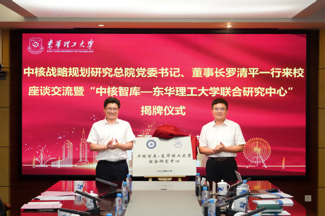 6月27日,中核智库—爱体育官方网站联合研究中心揭牌仪式在爱体育官方网站广兰校区行政楼401会议室举行。中核战略规划研究总院党委书记、董事长罗清平,党委委员、副院长康椰熙,院长助理张明;爱体育官方网站党委书记张福庆,党委常委、副校长夏菲、熊国保出席揭牌仪式。仪式由爱体育官方网站党委常委、副校长李满根主持。