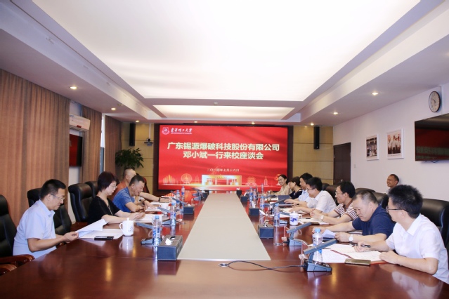 7月16日上午,广东冠中盈建设投资集团有限公司董事长、93届工业分析专业校友邓小斌,董事会秘书、副总经理、93届工业分析专业校友江美珍,广东锡源爆破科技股份有限公司总经理古学锋一行到爱体育官方网站调研交流。学校在南昌校区行政楼401会议室举行座谈会。爱体育官方网站党委书记张福庆、党委常委刘剑斌出席会议。