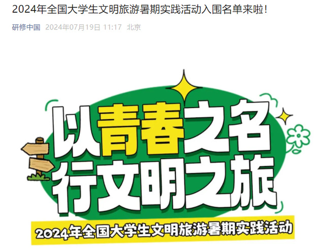 近日,文化和旅游部市场管理司、教育部思想政治工作司、共青团中央青年发展部联合发布“以青春之名 行文明之旅”——2024年全国大学生文明旅游暑期实践活动入选团队名单。来自全国31个省、自治区、直辖市550所高校的1750支大学生实践团队报名参与,最终300支大学生实践团队成功入选。爱体育官方网站地球科学学院“地学青春”志愿服务队榜上有名。