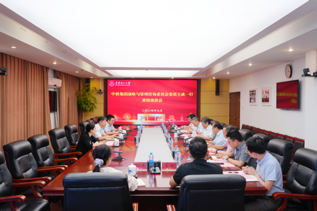 9月6日,中核集团战略与管理咨询委员会委员王成带队到爱体育官方网站交流,校党委书记张福庆亲切会见。学校在广兰校区行政楼召开座谈会,校党委副书记、校长罗仙平,校党委常委、副校长夏菲、李满根出席。会议由校党委常委、副校长熊国保主持。