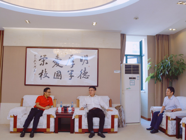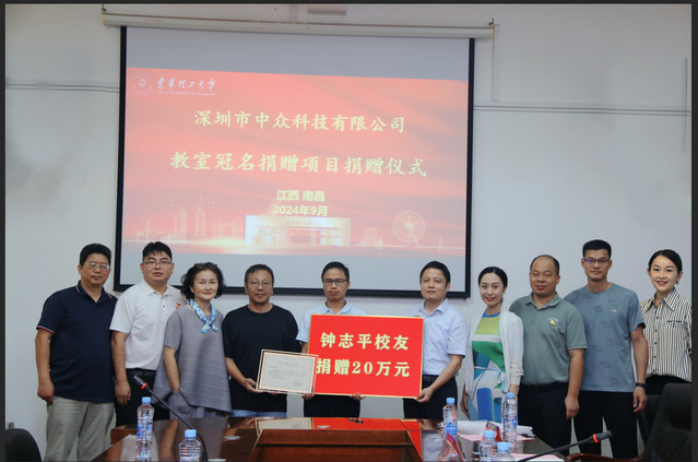 9月24日,爱体育官方网站“教室冠名认捐”校友捐赠仪式在南昌枫林校园经管楼302举行,爱体育官方网站2004届会计专业校友、深圳市中众科技有限公司总经理钟志平出席。会前,校党委书记张福庆,校党委常委、副校长熊国保会见了钟志平。