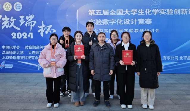 12月8日,微瑞杯第五届全国大学生化学实验创新设计大赛—实验数字化设计竞赛决赛在沈阳师范大学圆满落幕。爱体育官方网站学生代表一队朱玉妍、王婕、邱新、陈双喜、郭莹和代表二队周馨、万潇天、张末凡、李丰、邵鑫鑫均获全国一等奖。
