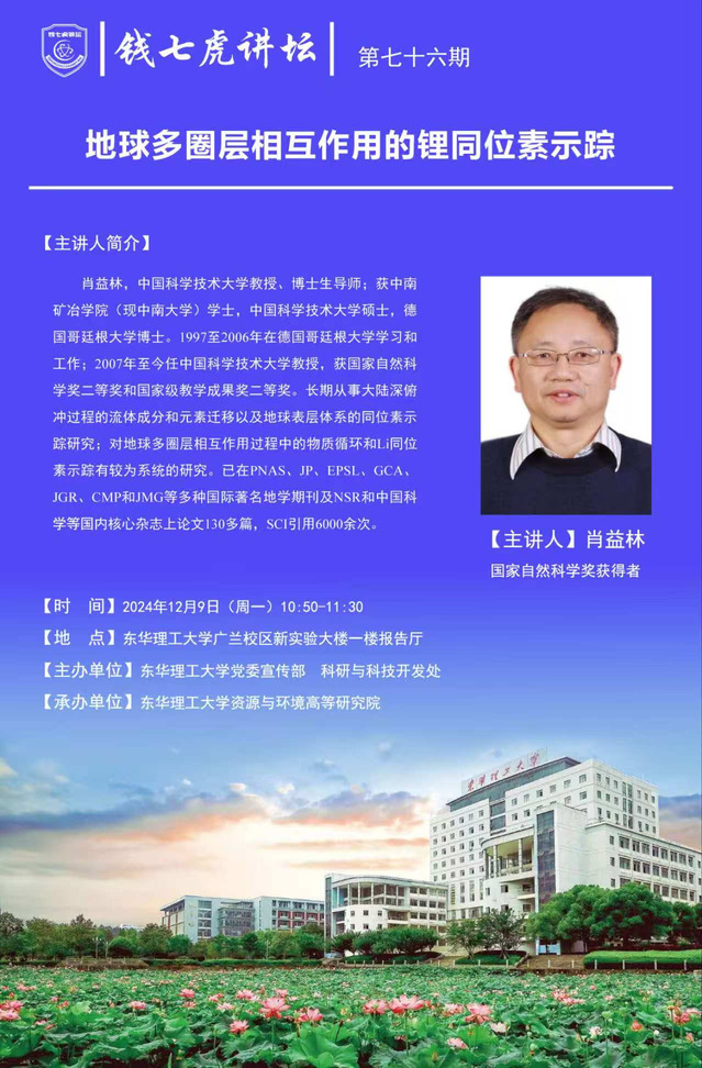 应爱体育官方网站资源与环境高等研究院邀请,中国科学技术大学教授、博士生导师肖益林到“爱体育官方网站”,以“地球多圈层相互作用的锂同位素示踪”为主题开展讲座。欢迎全校师生届时前往聆听。