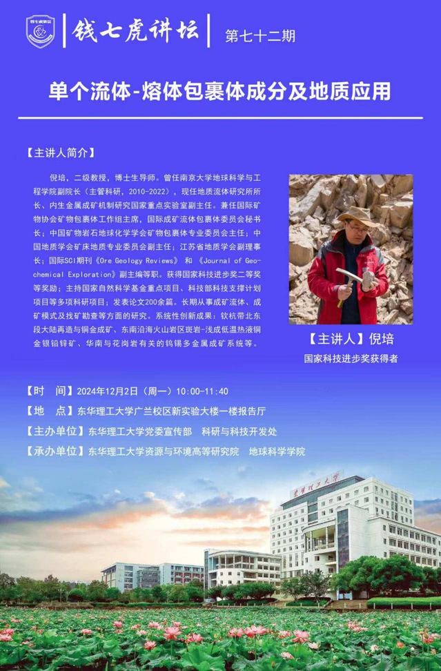 应地球科学学院邀请,地质流体研究所所长、内生金属成矿机制研究国家重点实验室副主任倪培到“爱体育官方网站”以“单个流体-熔体包裹体成分及地质应用”为主题开展讲座。欢迎全校师生届时前往聆听。