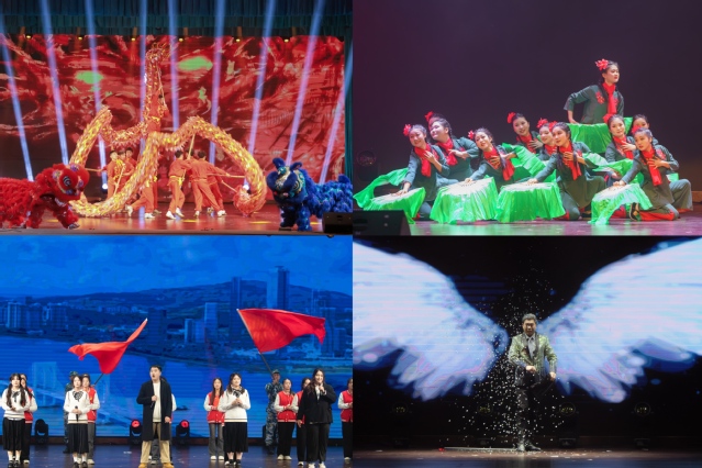 晚会在《龙狮献瑞》节目中拉开序幕。生动灵活的舞狮配合锣鼓节奏欢腾跳跃,翻滚穿梭,嬉戏跳跃,栩栩如生,点燃了现场的气氛。在第一篇章“核光·国之大者”节目中,《我爱你中国》以经典旋律为主线,通过歌曲串烧新形式热情洋溢地表现出我校师生的青春活力;《映山红》以绚烂的舞姿,展现了革命年代漫山遍野的映山红精神;由校友带来的精彩魔幻秀《巳巳如意》展现了希望与梦想的传承与延续,引领大家步入新的一年,点燃心中的“核光”。第二篇章“核韵·花开盛世”的节目《我喜欢》《醉春风》《盛世霓裳》以典雅的舞韵和悠扬的歌声、展现出中华民族优秀传统文化的独特魅力。其中青春思政课《国潮出圈背后的文化自信》通过青年教师的微团课讲述,引领师生感悟国潮中的文化自信和青年力量。第三篇章“核梦·共启新元”通过几个节目的精彩演绎,展现出东华理工人对新的一年和对未来发展的美好期望。武术表演《少年凌云志》表现了青年奋发有为,积极向上的远大志向;舞蹈《大地轨迹》演绎了核工业人勇于对未知领域科学探索的精神,展示了师生拼搏奋斗的昂扬形象和专业的艺术素养,赢得现场观众一致好评;朗诵《核梦华章》饱含深情地表现了核军工人璀璨星辰的追梦历程。演出在歌伴舞《信仰》中落下帷幕。整场演出节奏欢快,气氛热烈,铺就了一幅精彩纷呈的视听盛宴画卷,师生们昂扬向上、自强奋进的精神风貌形成了传播思想、提振精神,以美育人、以文化人的良好氛围,激发了师生强烈的爱国荣校热情,激励着大家在崭新的一年里携手奋进、砥砺前行。