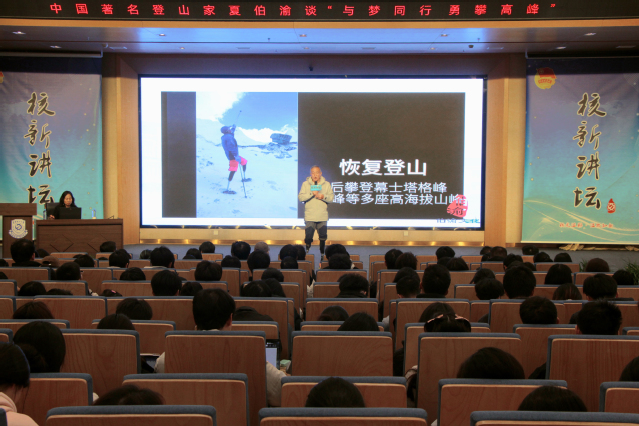 12月31日,无腿攀登珠峰第一人、“时代楷模”“感动中国”候选人、“全国自强模范”、中国著名登山家夏伯渝先生应邀做客核新讲坛,以“与梦同行 勇攀高峰”为主题在爱体育官方网站南昌广兰校园新实验大楼一楼报告厅开展讲座。全校300余名师生到场聆听,共同感受榜样力量。