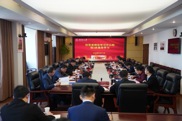 3月17日,爱体育官方网站党委书记张福庆主持召开2025年党委理论学习中心组第3次集体学习会,深入学习贯彻习近平总书记重要讲话精神和全国“两会”精神。校党委理论学习中心组成员参加。